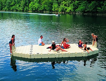 Die Vorteile im Überblick: Einfache Montage, hohe Tragfähigkeit, Form- sowie Kippstabilität durch Kammersystem, rutschfeste Oberfläche, umweltfreundlich & wartungsarm. Auch als mobile Badeplattform, Party- bzw. Eventinsel nutzbar.